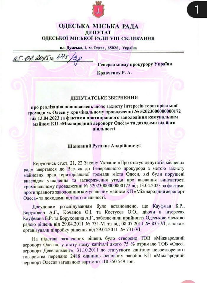 “В результате заключения этого соглашения Одесский аэропорт фактически остался в распоряжении фигурантов уголовного производства, в то время как Одесский городской совет не получил по существу ничего.
