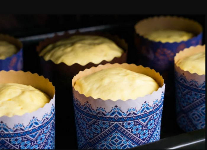 Если положить слишком много теста, верхушка получится чрезмерно пышной и неаккуратной. При правильном количестве она будет ровной и красивой. Бумажные формы хорошо держат форму, поэтому паска увеличивается в высоту, а не в ширину.