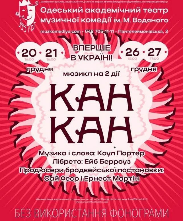 Два уикенда подряд Одесский театр Музкомедии приглашает на премьеру мюзикла «Канкан», впервые на сцене театра Музкомедии, впервые в Одессе, впервые в Украине покажут 31 января в 16:00.