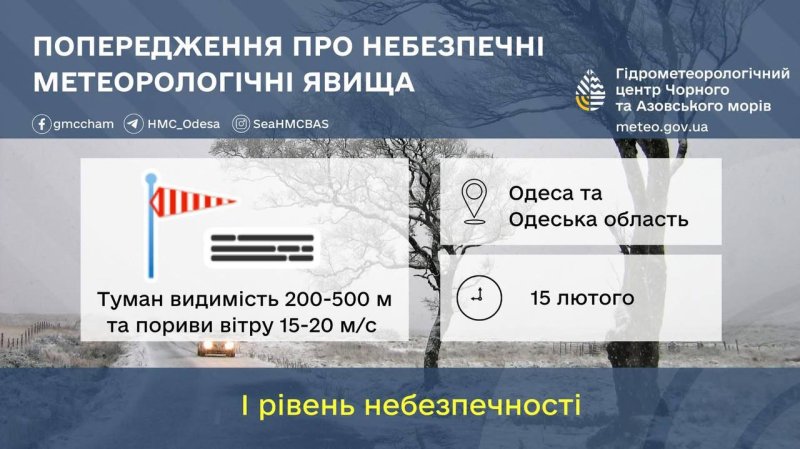 Вночі та завтра вранці в Одесі та області очікується туман, видимість 200-500 м, також попереджають про пориви вітру до 15-20 м/с, повідомляє Гідрометцентр Чорного та Азовського морей.