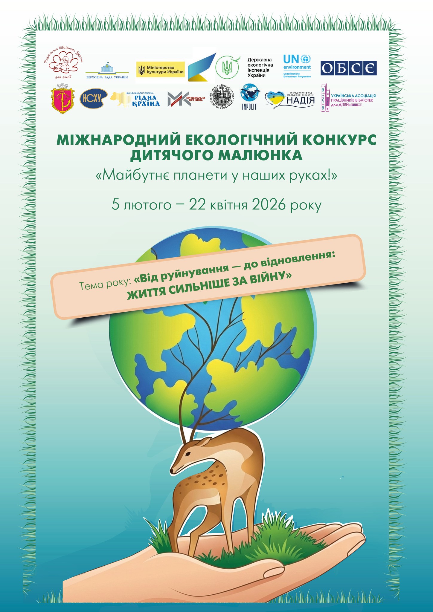 Конкурс уже стартував. Тема 2026 року: «Від руйнування – до відновлення: життя сильніше за війну». До участі запрошуються діти та підлітки віком від 6 до 18 років.